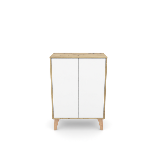 Cosmo Badmöbel - Standregal mit viel Stauraum, 2 Fächer und Soft-Close-Funktion, ABS-Schutzkanten, Optik Weiss / Artisan Eiche