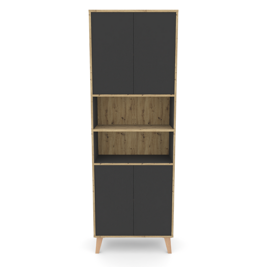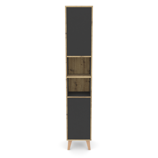 Badschrank MORENA mit 4 Türen und 2 offenen Fächern, Grau/Eiche