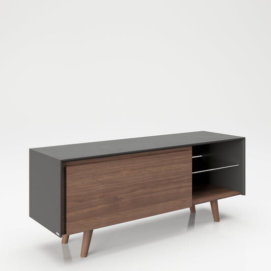 PLAYBOY - TV-Lowboard "VICTORIA" mit 2 Fächern, 1 Klappe, sanft-schliessend, Glasboden, exkl. LED, Walnuss/Grau, Retro-DesignNormaler Preis €359.90 EURNormaler PreisGrundpreis / pro-
