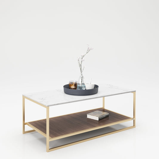 PLAYBOY - Couchtisch "OLIVIA" mit 1 Ablage im Walnuss Dekor, Tischplatte in Marmor Optik, goldenes MetallgestellNormaler Preis €89.90 EURNormaler PreisGrundpreis / pro€229.90 EURVerkaufspreis €89.90 EURSale