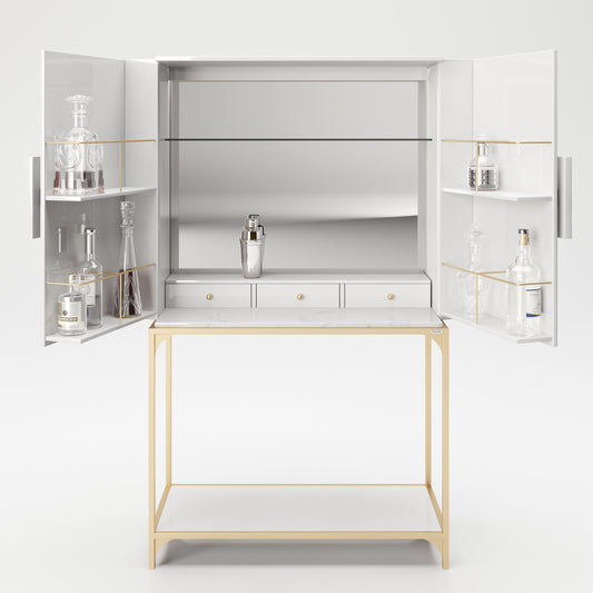 PLAYBOY - Bar "BRANDI" mit viel Stauraum, Spiegel-Rückwand, LED Beleuchtung, in Gold mit WeissNormaler Preis €399.90 EURNormaler PreisGrundpreis / pro€699.90 EURVerkaufspreis €399.90 EURSale