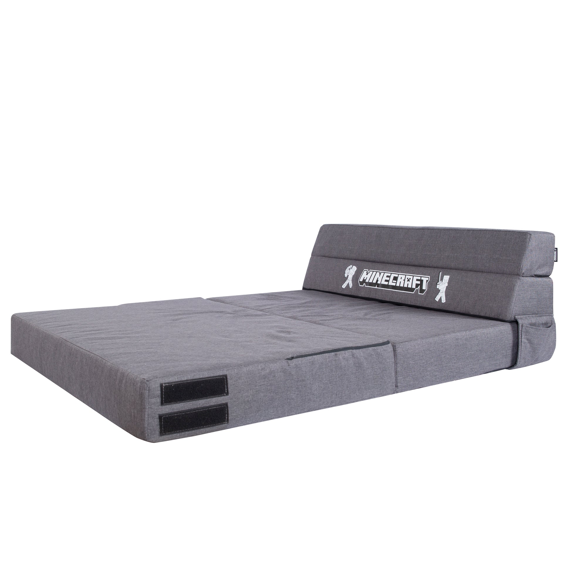 Entdecken Sie das vielseitige Klappsofa aus der Minecraft Möbelkollektion – die perfekte Kombination aus Stil, Komfort und Funktionalität! Dieses gepolsterte Sofa ist nicht nur ein gemütlicher Rückzugsort zum Entspannen, sondern lässt sich auch mühelos in ein Schlafsofa umfunktionieren, wenn Sie zusätzlichen Platz für Gäste benötigen. Das Klappsofa passt ideal unter das Kojenbett, wodurch es eine platzsparende Lösung für Kinderzimmer, Gästezimmer oder Spielzimmer bietet. Dank seiner hochwertigen Polsterung garantiert es höchsten Sitz- und Liegekomfort, während das Design von den beliebten Minecraft-Elementen inspiriert ist und jedem Raum einen spielerischen Touch verleiht. Ob als gemütliche Sitzecke zum Lesen und Spielen oder als bequemer Schlafplatz für Übernachtungsgäste – dieses Klappsofa ist ein wahres Multitalent. Mit einem Handgriff verwandeln Sie es vom Sofa in ein Bett und schaffen so im Handumdrehen zusätzlichen Schlafplatz. Bringen Sie ein Stück der Minecraft-Welt in Ihr Zuhause und genießen Sie die perfekte Mischung aus Funktionalität und Design.