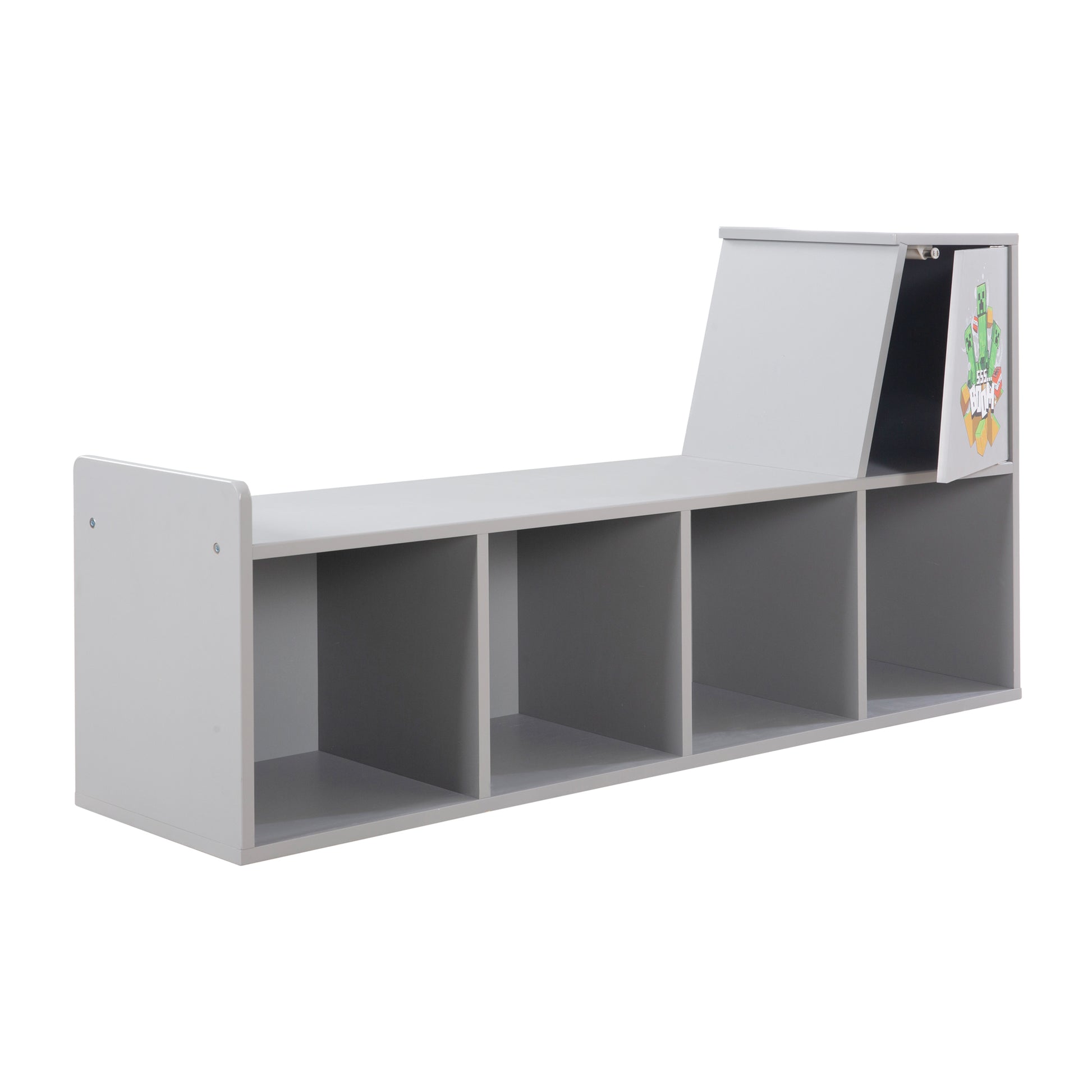 MINECRAFT - Sitzbank, Leseregal, Bank mit Sitzkissen und Stauraum, Kindermöbel mit buntem Design